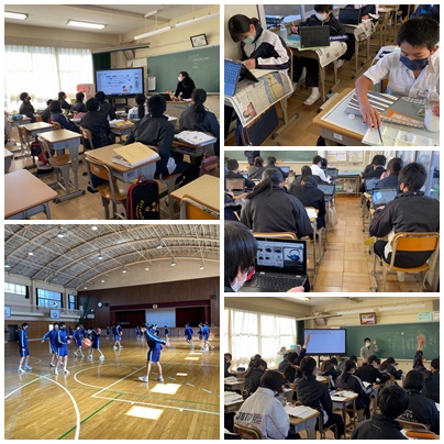 体育のバスケットボールやハンドボールの学習、国語の文章の読み取りの学習、社会科の世界の貧困について考える学習などに取り組んでいます。