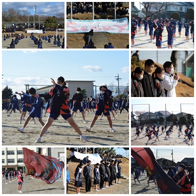 橋渡し集会の第2部を行いました。在校生からは3年生に向けて、ソーラン節の演舞がありました。12月ごろから練習を始め、2年生が1年生に踊りを教えながら、在校生が一体となって練習を重ね、今日の日を迎えました。先輩から伝統を引き継ぐ決意を込めた素晴らしい演舞でした。