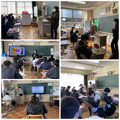 社会科の北海道地方の学習、英語の過去分詞の学習、数学の累積度数の学習、美術の鑑賞などに取り組んでいます。