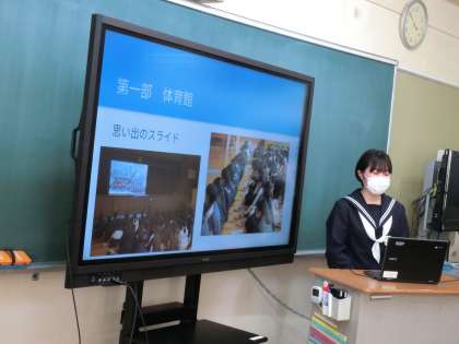 本日のST後、「城東中サミット」が行われ、全国で「城東」の名がつく学校が、それぞれ学校や市町村を紹介しました。今回は生徒会執行部のみで行いましたが、全国の城東中学校と交流を深めることができました。