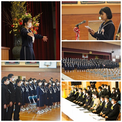 172名の卒業生の皆さん、ご卒業おめでとうございます。城中魂を大切にして、次のステージでの活躍を祈っています。また、これまで支えてくだっさた保護者の皆様、地域の皆様、在校生の皆さん、本当にありがとうございました。