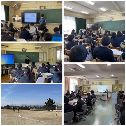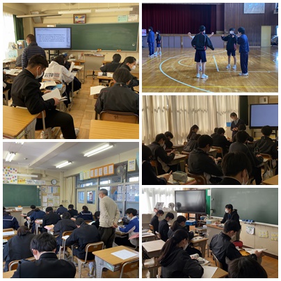 英語を使って行きたい世界遺産を紹介する学習、国語の助動詞についての学習、家庭科の食に関する課題についての学習などに取り組んでいます。