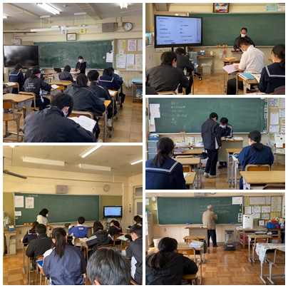 家庭科の消費生活についての学習、数学の箱ひげ図の学習などに取り組んでいます。昨日行われた公立高校の入試問題にチャレンジしている学級もありました。