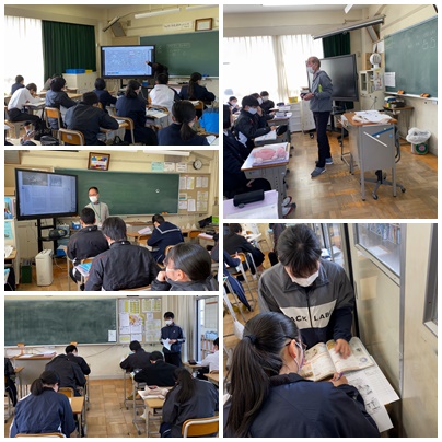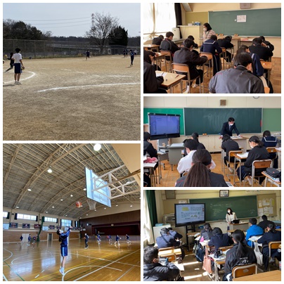 社会科の地形図についての学習、美術の紙粘土の学習、体育のバスケットボールやハンドボールの学習に取り組んでいます。
