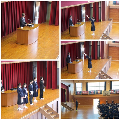 修了式を行いました。とても落ち着いた雰囲気で式に臨むことができました。また、令和4年度前期の生徒会役員の認証式も行いました。役員の皆さん、力を合わせて頑張ってください。
