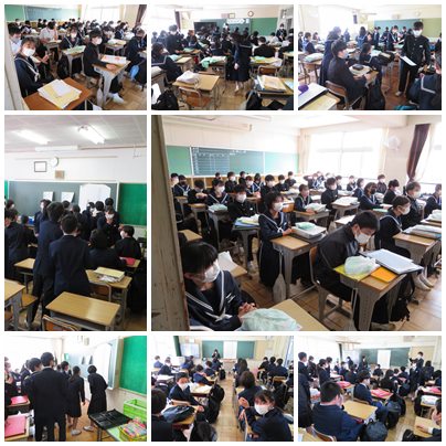 始業式の後、2・3年生ともに教室に戻り、旧クラスで配付物をもらいました。