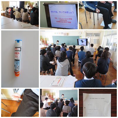 「食物アレルギー対応委員会」では、エピペンの使い方を実習しました。