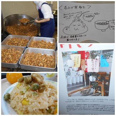 ★給食では、お皿にピラフーを尾張冨士のように盛りつけして、石にみたてた大豆と鶏肉のから揚げを山のてっぺんに上げながら食べます♪