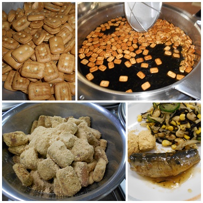 長期備蓄できる乾パンは、そのままでもおいしいですが、油で揚げてフライド乾パンにして、おやつ風にアレンジしました。今年は、きな粉をまぶして紹介しました。