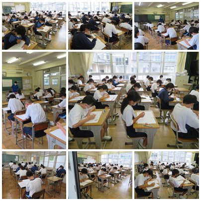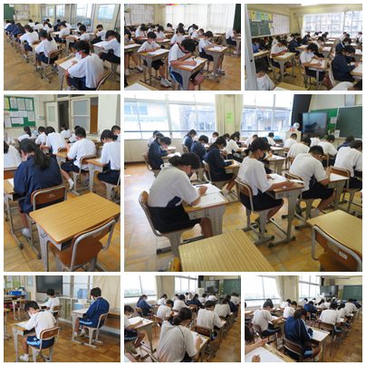 2時間目は、1年生が理科、2年生英語、3年生国語のテストに取り組んでいました。