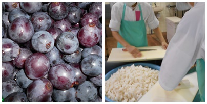 デザートに秋の味覚、ぶどうの王様「巨峰」をつけました。大粒1つずつ。おまけ入り♪