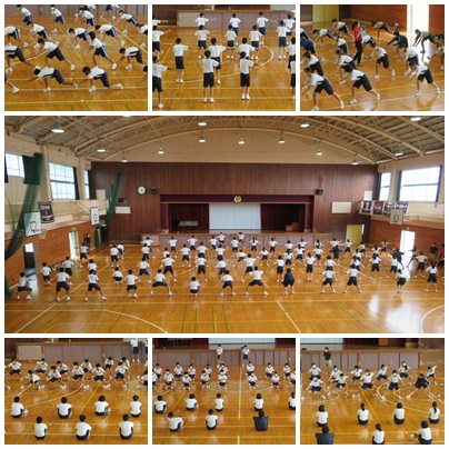 13日からブロックごとの「城中ソーランの練習会」が体育館で始まりました。