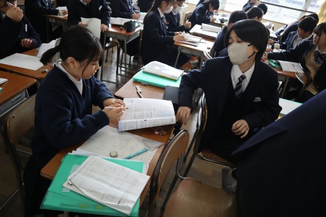 問題を解いた生徒は先生のチェックを受け、生徒同士で教え合っていました。