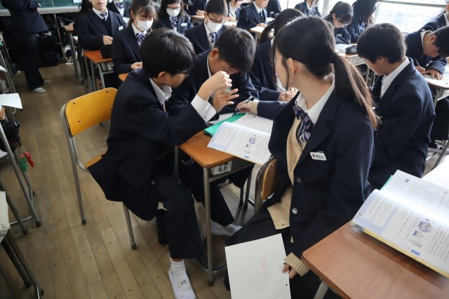 意見を出し合って人の意見と比べ、最終的にまとめたものを代表が発表しました。