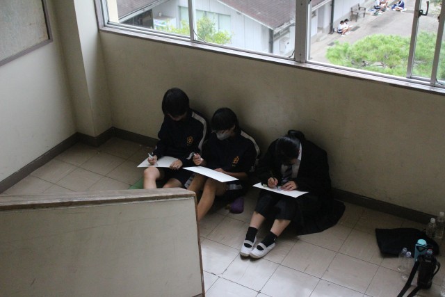 本日は写生会がありました。体育館、2年生フロア、本館など、描きたい場所を選び、風景を描きました。奥行きや立体感が出るように描き方を工夫したり、友達と感想を言い合いながら進めたり、とても良い雰囲気でした。時間をかけて友達とともに作り上げていく時間はとてもいい思い出になりましたね!