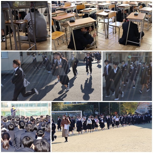 避難訓練、今回は昼休み時間に実施しました。先生方の支持はなくとも、素早く机の下に避難したり、窓から離れたりする姿がみられました。