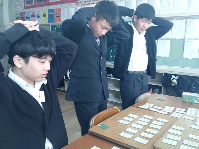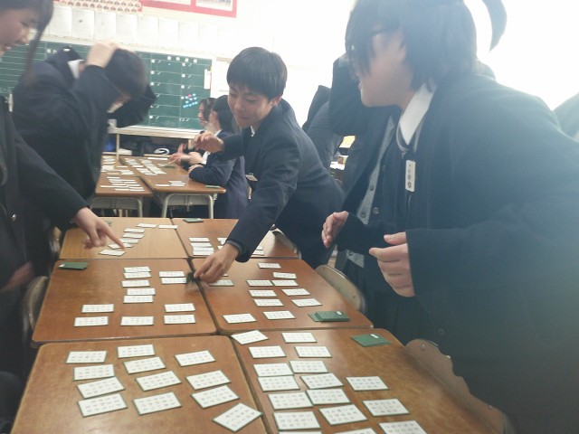 札を取ろうと一生懸命覚える姿、仲間が素早く取るのを見て「お~、すげ~」と称え合う姿など、みんなの良いところがたくさん見られた時間でした(^_^)