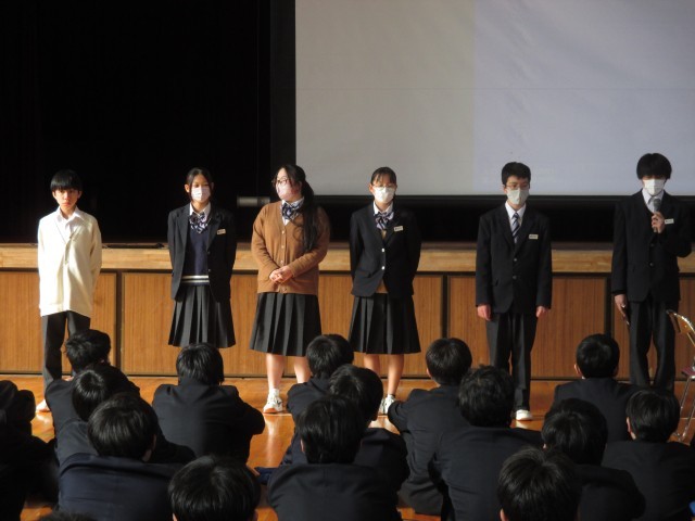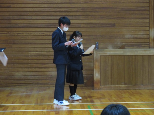 今日は学年集会がありました。修学旅行や春休みの生活、学習について話がありました。