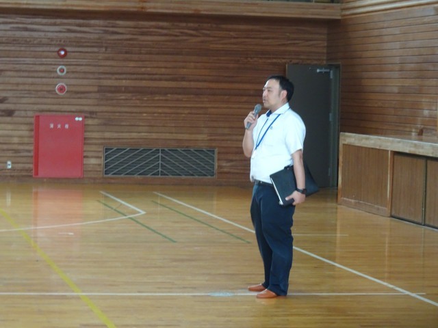 4限目には体育館に集まって学年に関わる先生たちから自己紹介を行いました。
