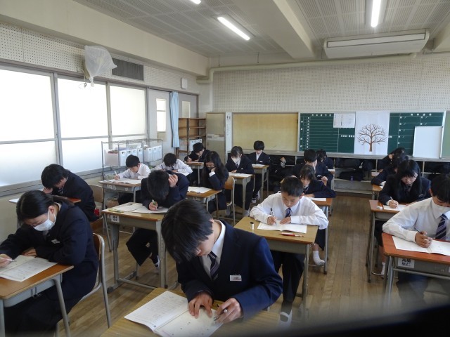 本日はNRTというマークシート式のテストを5科目受験しました。小学校で身につけてきた学力をしっかりと表せたでしょうか?集中した反動で休み時間にはしゃべったり思い思いの方法でリフレッシュする姿が見られました。明日からは通常授業がスタートします。