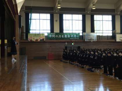 令和3年度のスタートを迎えました。新型コロナウイルス感染拡大防止のため、午後からの始業式となりました。昨日の入学式準備からさすが3年生という動きがたくさんあり、成長していることを嬉しく感じました。今年度もよろしくお願いします。