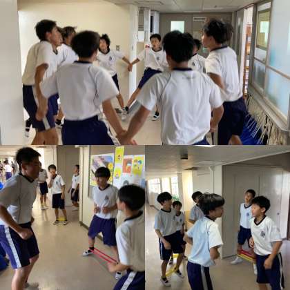 今日は体育館が使えないため、外で軽めに走ったあと、校舎内で三グループに分かれてトレーニングをしました。