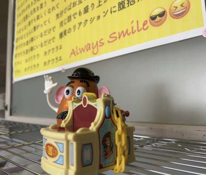 写真は、あるクラスのAlways Smileという言葉と、ポテトヘッドが好きだったので、撮らせていただきました♪