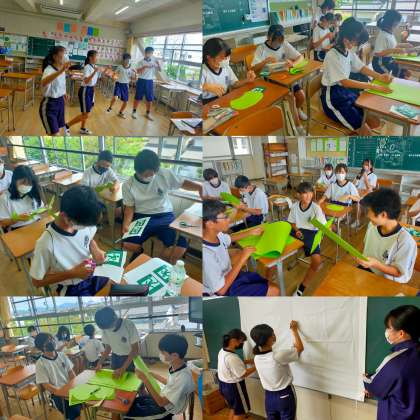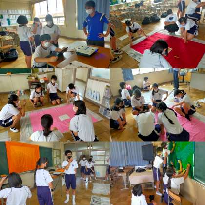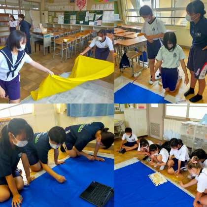 応援内容を考えるグループ、応援グッズを作るグループ、応援旗を作るグループに分かれて活動しています。