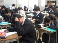 今日は、重曹(炭酸水素ナトリュウム)にクエン酸水溶液を加え、二酸化炭素を発生させる実験を見させてもらいました。シュワー・・と二酸化炭素が発生するだけでなく、冷たくなる吸熱反応に生徒たちは興味津々でした。