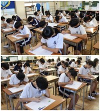今日は、公民的資質を培うため、「決まりをつくるときは、どのようなことに気をつければよいのか?」をテーマとした授業でした。「全校18学級の学級でエアコンが壊れ、11学級しかエアコンが改修修理ができない」という条件のもと、公正さや効率性を視点にして、どうすることが一番望ましいのかを班や学級で話し合う授業でした。身近で切実感のあるテーマであったことから、どの生徒も積極的に考え参加する姿が見られました。