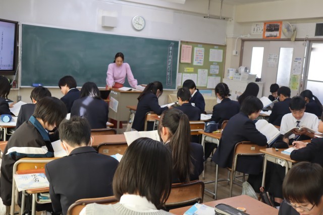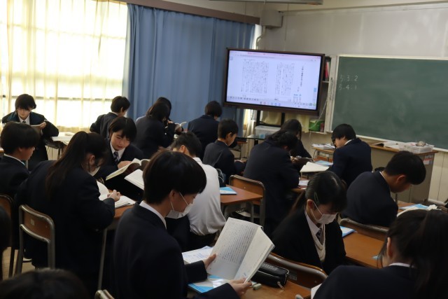 国語の授業では古典に触れる教材として、楽しみながら日本の伝統文化や和歌の世界、競技の面白さを学んでいます。