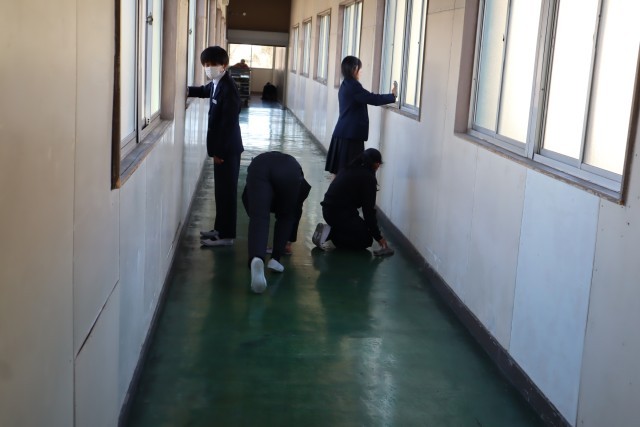 教員も一緒に清掃を行い、道具の使い方などを指導します。