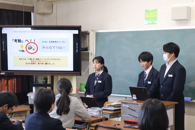 3年生送る会(三送会)で、1年生が卒業生へ感謝とエールを伝えます。