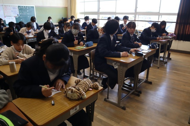今日は、生徒が書いた随筆の発表でした。発表後は質問の時間を設け、交流しました。