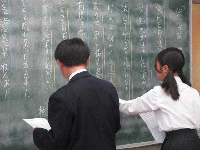 歌詞にどんな意味や気持ちが込められているのかをクラスで考えました。