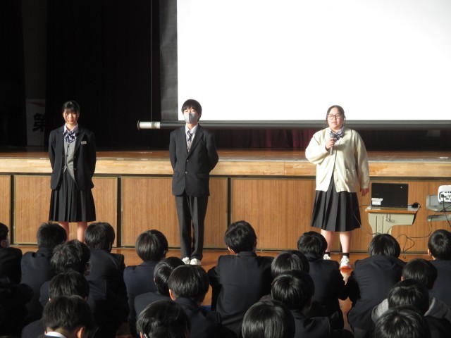 クラスの反省などを発表し、今後の学習や冬休みの過ごし方についてお話を聞きました。寒い冬も元気に過ごすために、規則正しい生活を続けていきたいですね!