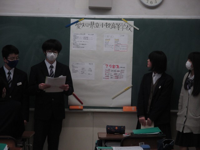 班で1つの高校を調べ、作った新聞をクラスで発表しました。