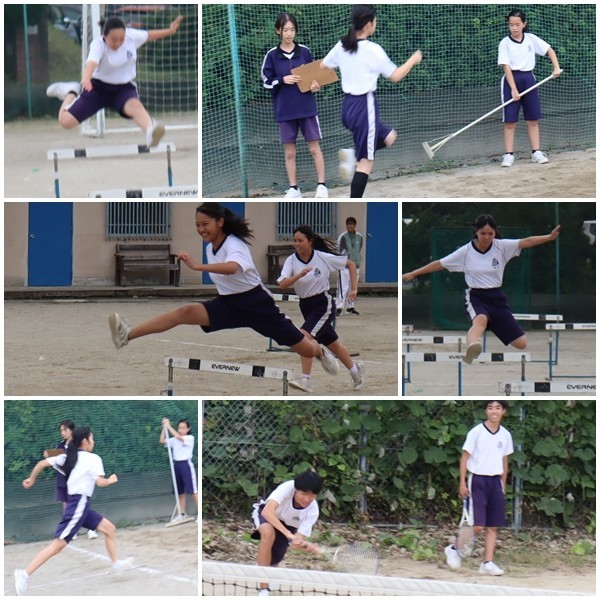 3年生 体育のテニス、走り幅跳び、ハードル走