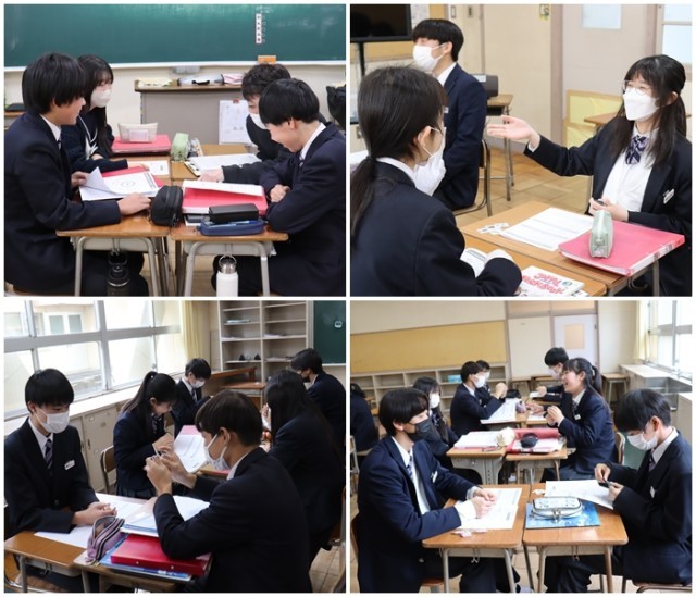 英語の授業では、環境悪化の地球規模の原因である「化石燃料の使用」を押さえ、新たなエネルギーの活用方法について英語で自分の意見をつくるという問いでした。「うーん難しい・・・」少し前には、登場しなかった英語の授業です。社会の変化に合わせて授業内容も変わります。先生方も学び続けないといけないと痛感します。