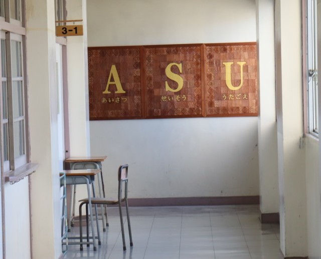 3年生全員がワンピースずつ彫って組み合わせたASUのレリーフパネル、壁への取り付けが完了しました。卒業の前には、隙間が空かないように各ピースをフレームに合わせて組み合わせ固定しパネルとして完成させてくれた生徒がいます。また、空いてる時間にニス塗りをしてくれた生徒もいます。彫っただけでなく苦労をして仕上げてくれた生徒がいたことで、ここまで完成できできました。何十年先まで、ASUの願いと共にこのパネルが残り、79回卒業生の皆さんが保護者として来校したとき、「お母さん(お父さん)がこれ彫ったんだよ」と我が子に伝えられる日が来ることを願っています。