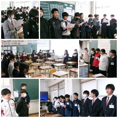 また、3年生を送る会に向けて、「大切なもの」の合唱練習に励んでいます。昼休みにパートごとの練習を行ったり、2年生と合同で練習をしたりと、よりよい合唱を目指して頑張っています。本番で3年生への思いがしっかりと届くとよいですね♪