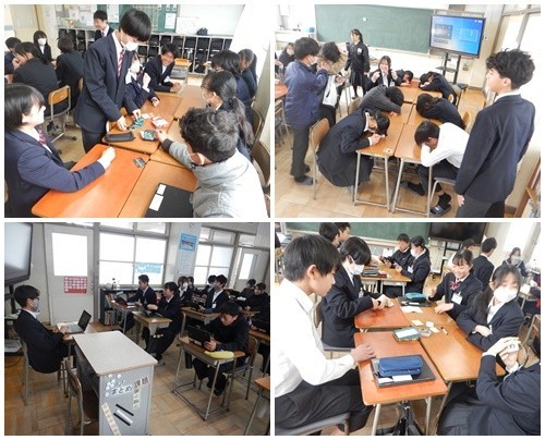 今日は学級の時間が2時間、学年の時間が1時間ありました。前半の学級の時間には学級レクを、後半には、『別れの花束(寄せ書き)』を行いました。また、2年4組は最後の調理実習を行いましたが、かねてから「もやしパーティーをやる」という計画があったため、調理実習と併せて学級レクの時間に行いました。4組以外の学級は、カードゲームや道具不要のパーティーゲーム、カフートなどをして楽しみました。今の学級で盛り上がれるのもあと数日です。いろいろな思いがありますね。その個々の思いは、『別れの花束(寄せ書き)』の時間に伝えることができたでしょう。プライスレスな宝物になりましたね。学年の時間には、修学旅行2日目の班別行動の工程表の作成をしました。旅行の計画を立て始めると、あそこも行きたい、ここも行きたいとアイデアがあふれたり、東京をあまり知らないからどこに行けばよいのと迷ったりして、なかなかまとまらないかもしれません。せっかくみんなで行く修学旅行なので、みんなが納得した計画になるようにがんばりましょう。