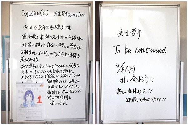 今日は締めくくりの修了式でした。教室もきれいにし、次の学年に引き継ぎました。さて皆さんにとって、この1年はどんな1年だったでしょうか。自分や学年にとって、大きく成長できた1年であってほしいと願います。