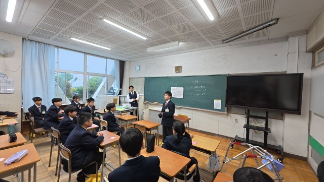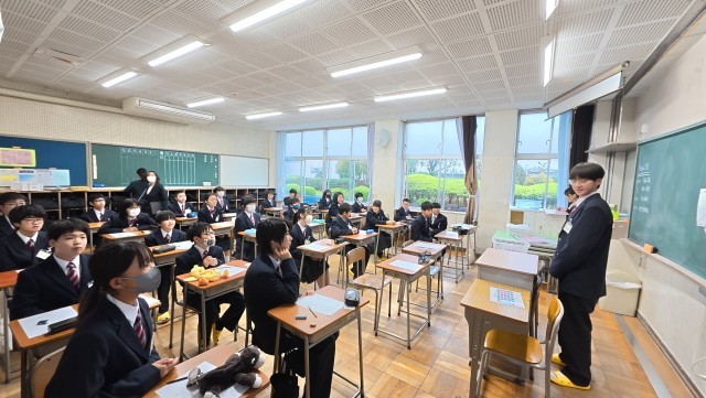 今朝、昇降口で皆さんが登校するのを待っていました!