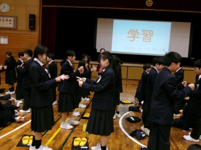 4限に行った学年集会では、「給食の時間の過ごし方」や「学習」、「学校生活の送り方」についての話がありました。