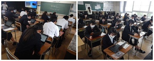 今日と明日で3年生は、全国学力・学習状況調査に取り組みます。今日は「英語」の『読むこと』『書くこと』『聞くこと』の調査と『学習環境』『生活習慣』『英語学習状況』等の質問紙調査でした。明日は、国語と数学の筆記による学力検査を行います。がんばってください。また、明日の午後には、今年度はじめての授業参観、PTA総会、学年懇談会に行います。新しいクラスでのお子さまの様子などをぜひご参観ください。