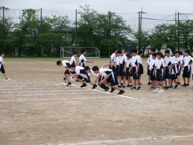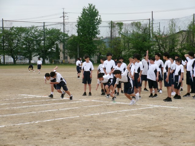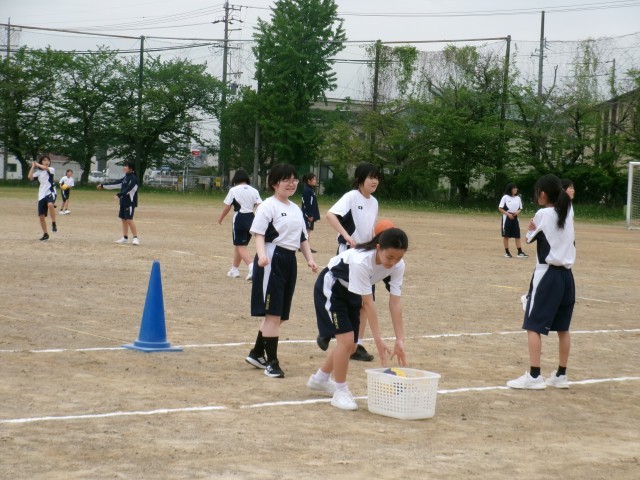 体育の授業では、体力テストの50m走やハンドボール投げを行いました。