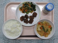 麦ご飯 冬瓜入りマーボー豆腐 蒸しぎょうざ 切干大根ともやしのナムル 牛乳 です。