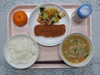 麦ご飯 鮭フライタルタルソース まめまめサラダ お月見呉汁 お月見ゼリー 牛乳