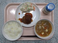 今日のハヤシライスに入っている玉ねぎは、南部中学校の敷地で育った玉ねぎです。直径10センチくらいに丸々と大きく育った、甘みとみずみずしさがあり、とてもおいしい玉ねぎです。玉ねぎ特有の香りや辛みは、「硫化アリル」という成分です。この「硫化アリル」は、アリシンという成分に変化し、血行をよくしたり、疲労回復を助けたりするなど、うれしい働きをしてくれます。